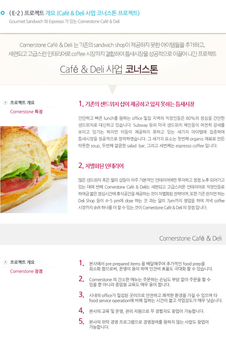 Conerstone 카페&델리 사업